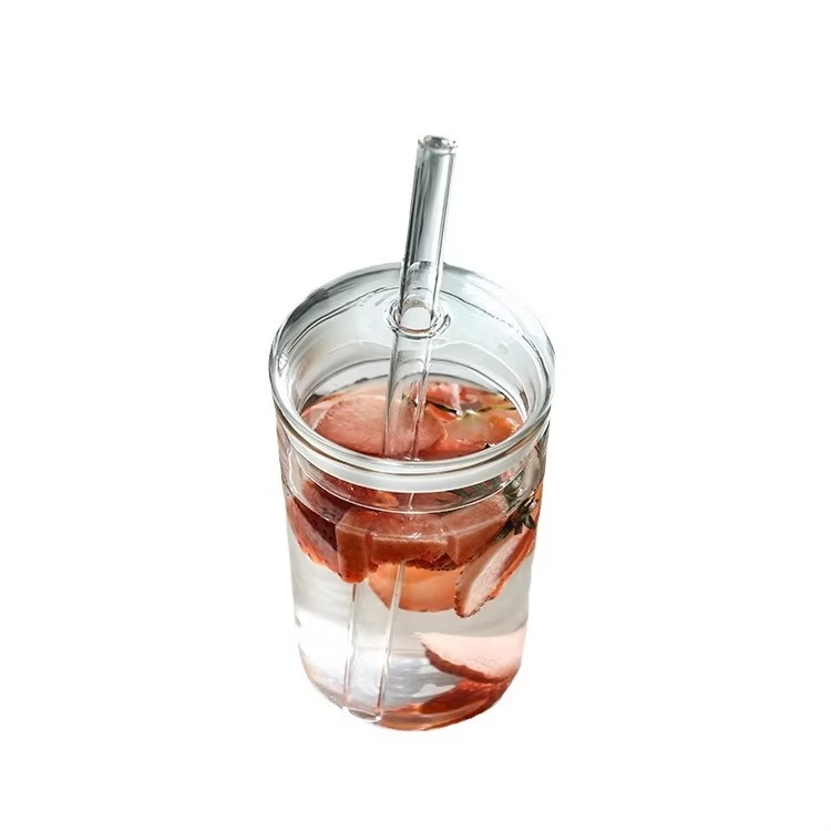 New Trendy 500ml Glass Smoothies Tumbler Reusable Iced Coffee Cup with Dome Lid and Glass Straw